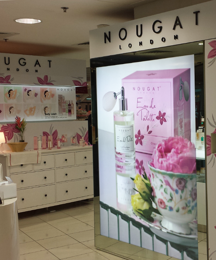 With success in the UK market, Nougat's products are continuously showcased and sold in famous department stores and duty-free shops worldwide. These include Harrods in various countries, Henri Fred Segal in the US, Perfume&Co in Portugal, IF in Spain, David Jones in Australia, and Takashimaya in Singapore, among others.