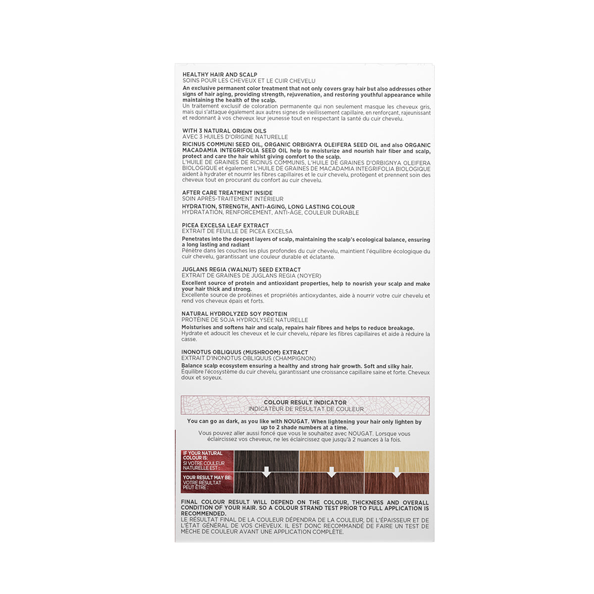 首創針對成熟頭髮進行髮質與色彩呵護的天然無氨配方,減低染劑對頭皮頭髮的傷害與致敏風險同時融入兩大創新科技以及天然植萃組成的抗衰老配方,針對頭皮和脆弱受損髮質進行有效的修護減少染髮對髮質的傷害,修復頭髮毛鱗片,提升頭髮強韌度,喚醒頭髮自身活力,呵護頭皮健康。